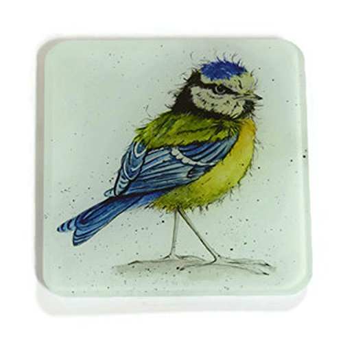 Blue Tit Glass Coaster, Bird Drinks Mat by The Skinny Card Company