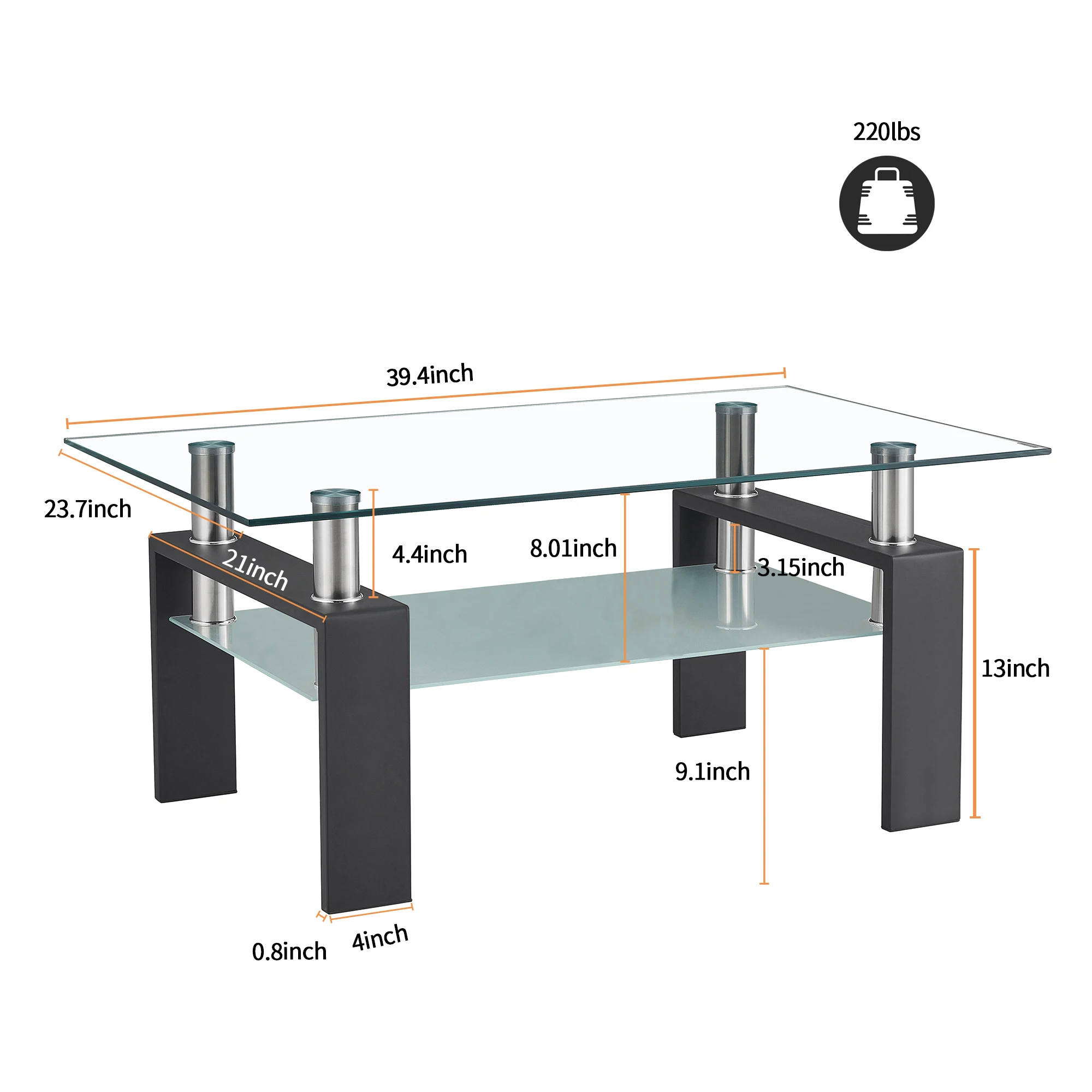 Glass Coffee Table Living Room Double Layer Square Rectangle Clear Tea Table Modern Side Center Tables For House Furniture