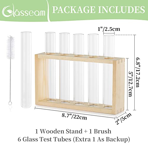 Glasseam Vaso Interno Decorativi Fiori Vetro: Moderni Vasi Provetta Porta con Supporto in Legno Eleganti Stazione di Propagazione per Talee Piante Idroponico Tavolo