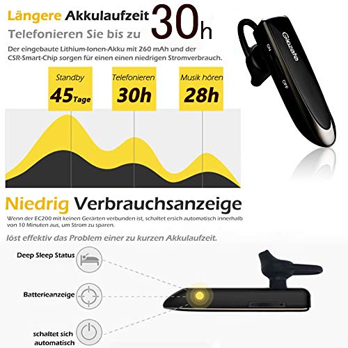 ■ 【 Incredibile durata 】 La batteria integrata da 260 mAh ad alte prestazioni, dotata di un processore CSR8615 altamente sviluppato garantisce un basso consumo energetico e risolve efficacemente il problema di una durata della batteria troppo breve. Non dovrai più limitarti a sperimentare il lavoro o il tempo libero.
