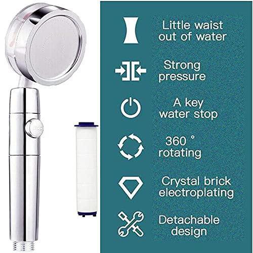 Gleamydot Doccetta A Risparmio Idrico, Soffione Doccia Turbocompresso Ad Alta Pressione Con Filtro E Interruttore Di Pausa, Soffione Doccetta Ad Elica Kit Booster Palmare Rotante A 360° (Oro)