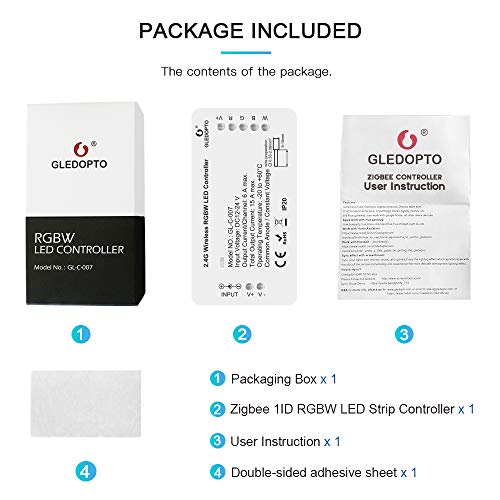 GLEDOPTO Smart Home ZigBee LED Strip Controller RGBW 1ID dimmerabile compatibile con Hue Bridge SmartThings Amazon Echo Plus Smart Phone AppControllo vocale per RGBW LED Strip Light (richiede ZigBee