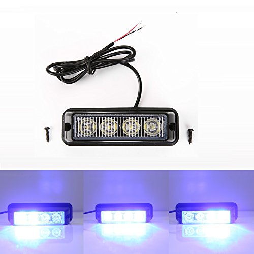 Gledto Luce 4W 12V 4LED Blu Flash Strobe Light Luce Lampeggiante Allarme Auto Emergenza Impermeabile Faro con Sicurezza ad Alta Luminosità Super Bright Luce Antinebbia Faro Anti-brouiilard Lampadine Tettuccio Luce Stroboscopica