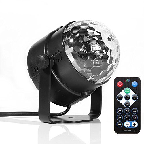 Gledto Mini Palla Lampada 3LED Multicolore RGB Magica Proiettore Luci da Palco Cristallo Rotante Sfera LED Effetto con Telecomando + Alimentazione EUper KTV Discoteca Bar Club Festa di Natale DJ
