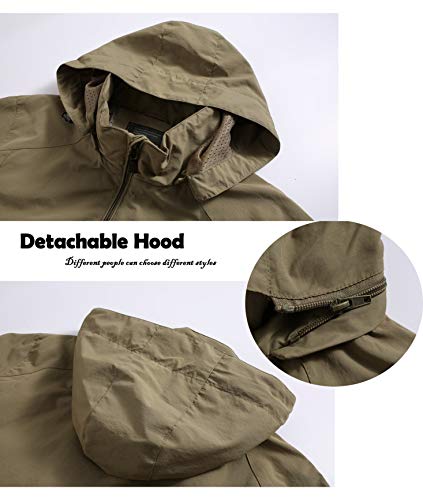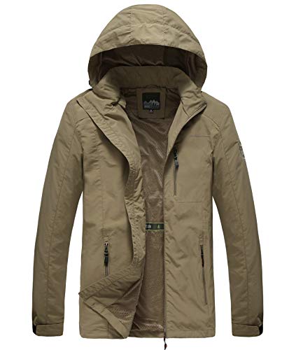 GLESTORE Giacca Uomo Manica Lunga con Cerniera Cappotti da Uomo con Cappuccio Stile Sportivo da Uomo Cachi XS