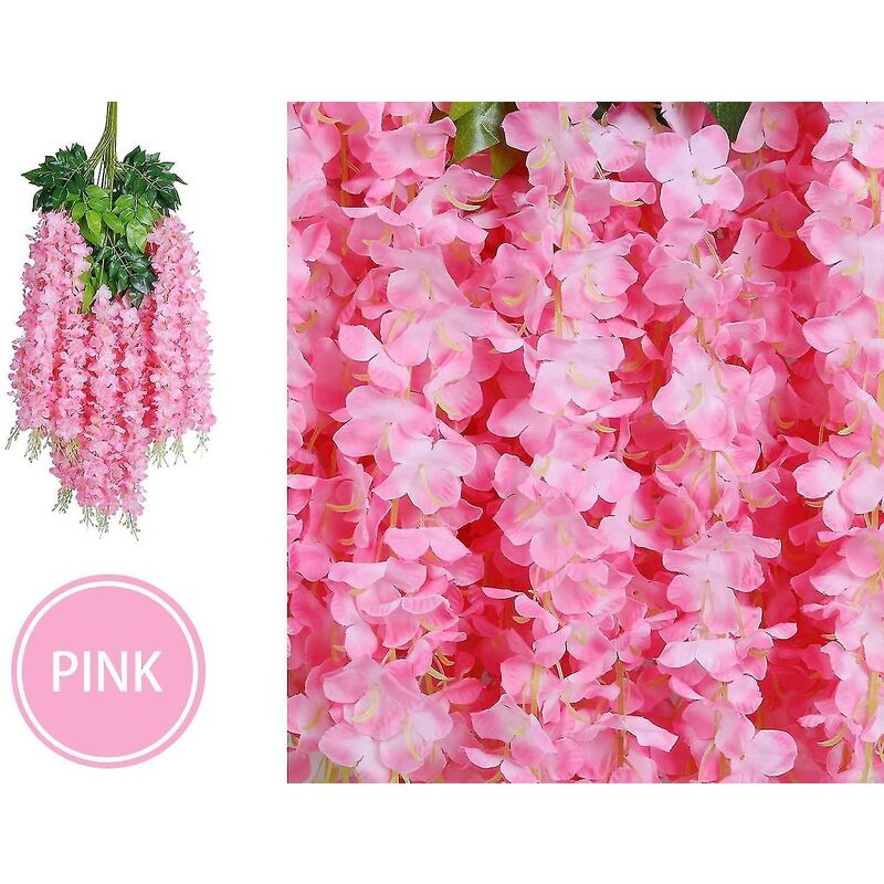 Il pacchetto include: 24 viti di fiori artificiali, dimensioni di ogni vite finta Fiore: circa 110 cm di lunghezza da glicine artificiale con 3 rami, ogni perlina è 55 cm, più fiori in ogni perlina, extra spessa e bella. Materiale: sciarpa di seta e plastica. Sciarpa in seta per rendere i fiori pieni e stratificati, le vene delle foglie sono diverse, i petali e le foglie non cadono facilmente. Facile da installare: super facile da installare e rimuovere, facile da piegare per appendere Elevata biofedeltà: fiori dall'aspetto naturale, petali pieni e morbidi, vividamente realistici e realistico, sembrava più naturale e bello, perfetto per decorazioni nuziali, decorazioni per la tavola o eleganti tessuti per la casa, adatto anche per un uso esterno. Perfetto per: i fiori di spago sono perfetti per bouquet da sposa, feste, decorazioni per ufficio, decorazioni, altari, chiese, corpetti, archi di chiese, centrotavola per ricevimenti, puoi appenderli al muro, sul porte, sull'altalena, sullo