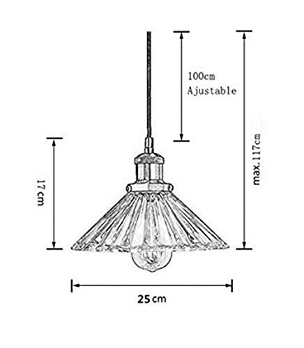 Glighone Lamapada a Sospensione Industriale Vintage Edison da Soffitto Luce Retro Interni Lampadario Attacco E27 Plafoniera in Vetro 40W