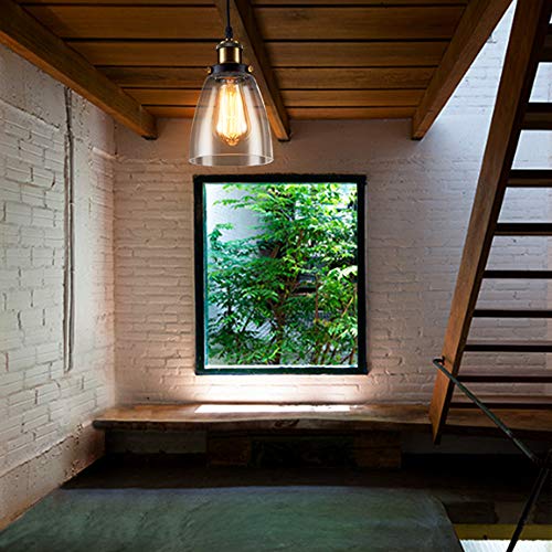 Glighone Lampada a Sospensione Industriale Vintage Edison da Soffitto Luce Retro Interni Lampadario Attacco E27 Plafoniera in Vetro
