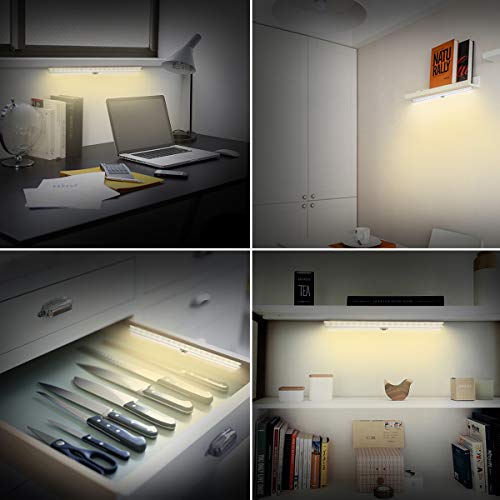 GLIME Luce per Armadi 20LED Lampada Armadio con Sensore Luce e di Movimento Batteria Ricaricabile 900mAh, Sensore Regolabile, Auto/On/Off Installabile in 3 Modi - Luce Calda