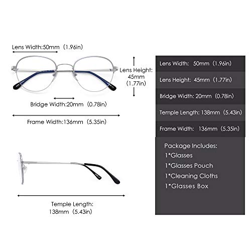 GLINDAR Occhiali Blu che Bloccano la Luce per Donna Uomo Occhiali Rotondi per Computer Lenti Anti Luce Blu Argento