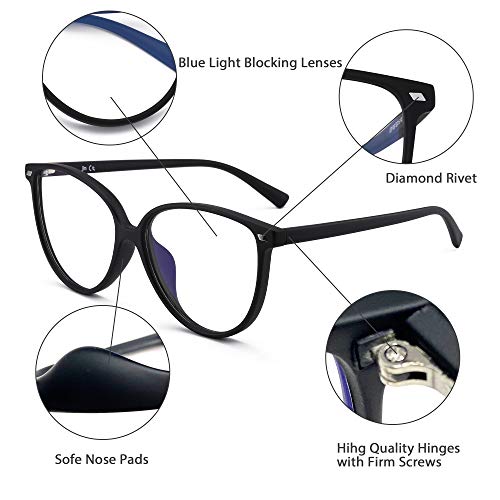 GLINDAR Occhiali Oversize Blu che Bloccano la Luce Occhiali Anti-luce Blu per Computer Montatura Nera