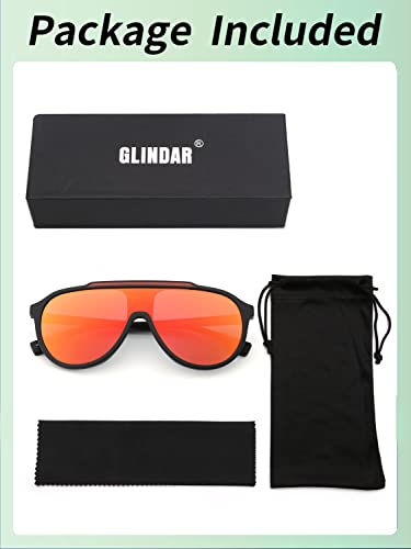 GLINDAR Occhiali da Sole a Scudo Polarizzato Grandi per Uomo Donna, Occhiali da Moda Rotondi Leggeri UV400 Nero/Rosso