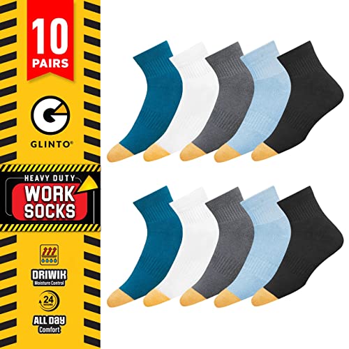GLINTO 10 paia di calze da lavoro (Quarto di lunghezza) resistenti e durevoli da uomo - con tecnologia di controllo dell'umidità e ammortizzazione in cotone spesso (EU: 38-44, Multicolore)