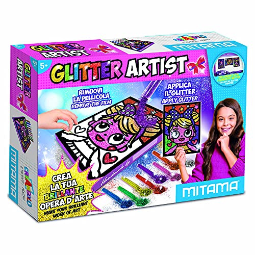 Glitter Artist, Quadretto Adesivo A4 + 8 Polveri Glitter +2 Colle Glitter