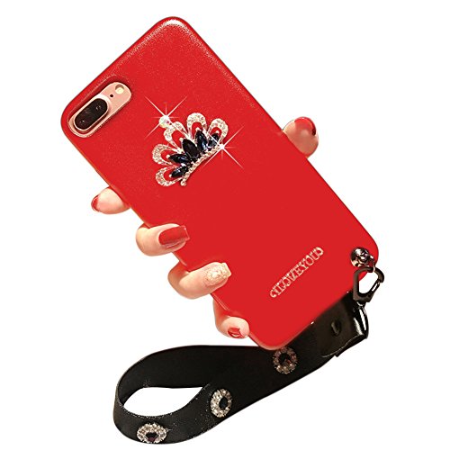 3D Glitter Bling Strass DIY Cover iPhone 8 Plus- Vandot Moda alla moda Strass Tiara Corona custodia Per iPhone 7 Plus Crystal Case Fatto a Mano Lusso Rhinestones Strass Diamante Ultra Slim Silicone Case Ultra Sottile 0.7mm Morbida TPU Gel Cover Case Shock antiscivolo cover case iPhone 8 Plus / iPhone 7 Plus 5.5"con Strap,Rosso