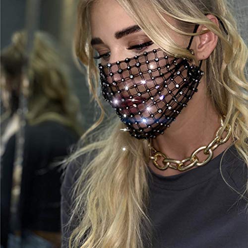 IYOU Glitter Cristallo Bocca Copertina Nero Pizzo Masquerade Viso Maschere Lucente Strass Bocca Copertina Halloween Genio Bling Costume Decorazione Gioielleria per Donne e Ragazze