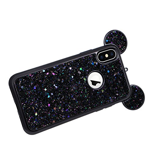Glitter Custodia per iPhone X, Girlyard Brillantini Strass Bling Lusso Colorate Oreilles di Souris Disegno Nero Antiurto Cover Case Opaca Carino Crystal Silicone Morbida Gel TPU Coperture Posteriore per Apple iPhone X con Protettiva Pellicola e Stilo