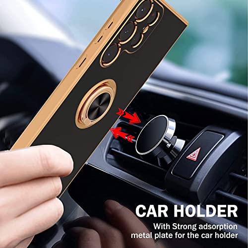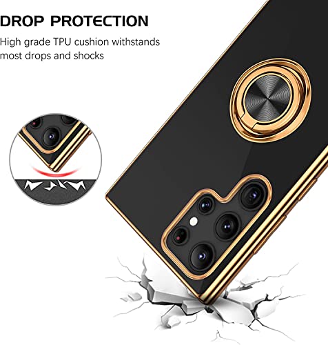 Glitter Custodia for Samsung Galaxy S22 Ultra Custodia Smooth Surface,Custodia in TPU Placcata Elettroplaccata,360° Regolabile Anello Magnetica Supporto Ring Cover per Samsung Galaxy S22 Ultra,Nero