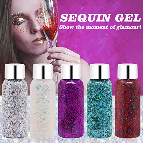 Glitter Body Gel,Glitter Body Gelcon lustrini,Gel Cosmetico con Glitter Olografici, Glitter Olografico per viso, Unghie, Occhi, Corpo, Labbra, Capelli,Festival (5)
