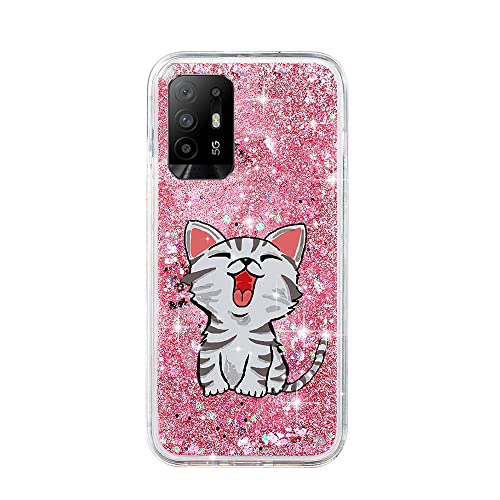 VLQI Glitter Liquido Cover Compatibile con Oppo A94 5G Custodia Bling Sparkly Sabbie Mobili TPU Silicone Protettivo Morbido Case per Oppo A94 5G - Gatto