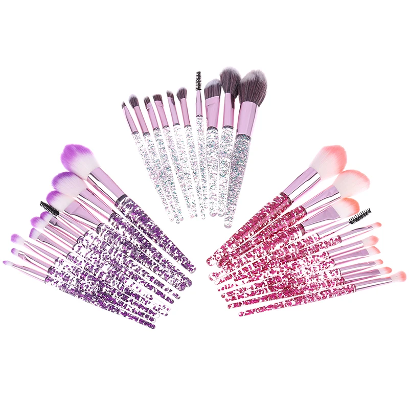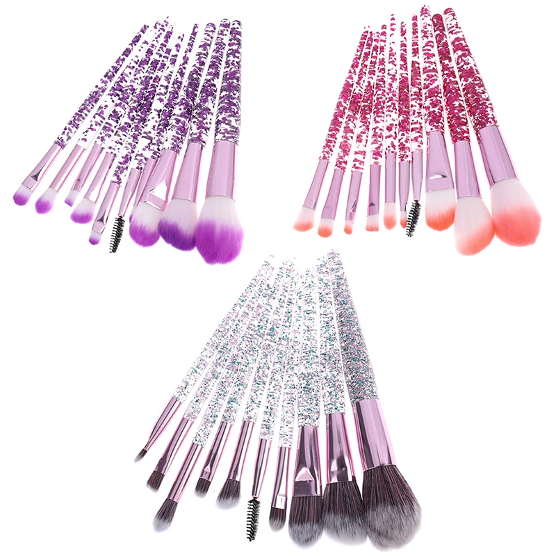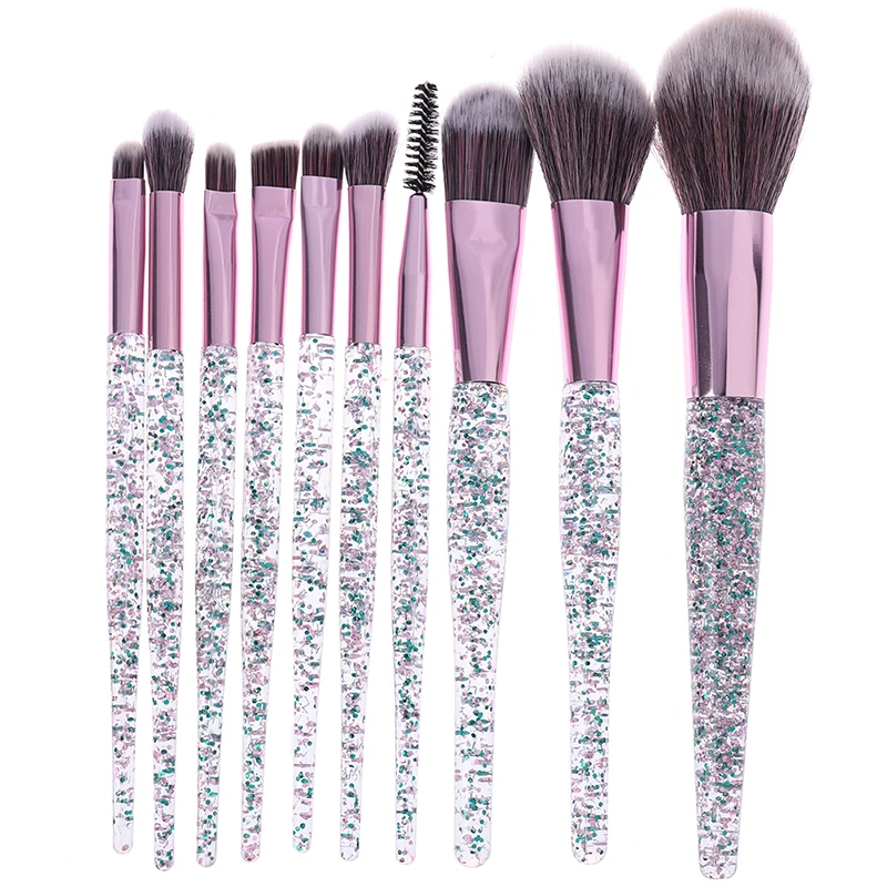 10 Pcs Glitter Makeup Brushes Set Crystal Handle Makeup Brushes Powder Foundation Eyebrow Face Makeup Brush Cosmetic Tool