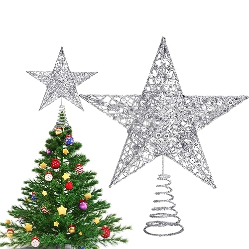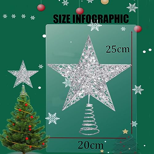 Glitter Metallo Albero Stella - Albero Punta Stella Argento, Stella Albero Natale, Albero Di Natale Stella Superiore, Topper Albero Di Natale, Per Decorare Alberi Di Natale - 24cm