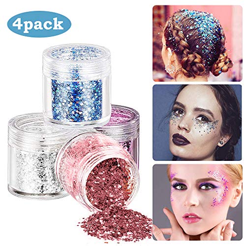 Glitter Sequin, innislink Chunky Glitter Cosmetici Guance Viso Unghie Glitter Capelli Ombretto Glitter Make-Up Paillette Cosmetico glitter per Christmas, Compleanno, Decorazione del festival- 4 Colori