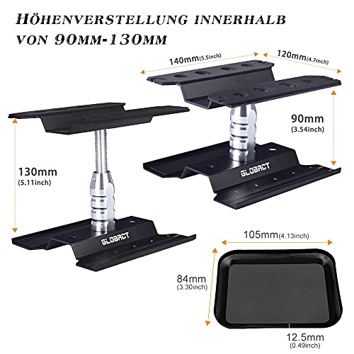 Altezza regolabile: il supporto per auto RC può regolare l'altezza tra 90 mm e 130 mm. Il supporto di riparazione con funzione regolabile in altezza consente di trovare una posizione comoda per riparare il modello della vostra auto.