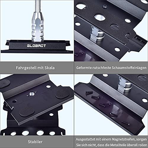 Movimento di rotazione a 360 gradi: supporto di riparazione RC girevole a 360 gradi, regolabile in altezza, fori integrati per ricostruzione degli ammortizzatori, telaio con scala graduata, è possibile misurare la lunghezza delle parti. Dotate di una striscia magnetica non dovrete preoccuparvi che le parti metalliche rotolino ovunque.