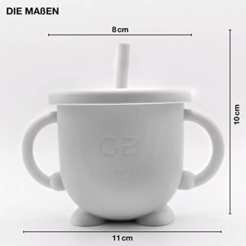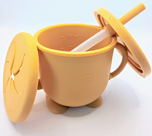 GloBait Tazza in silicone 2 in 1 per bambini e bambini, con maniglia/a prova di perdite, con cannuccia e coperchio/bicchiere educativo senza BPA, per ragazze e ragazzi (giallo senape)