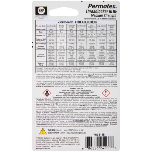 Il threadlocker multiuso a media resistenza si blocca e sigilla evitando che le parti si allentino a causa delle vibrazioni