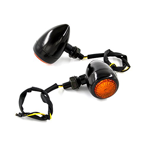 BJ Global cavalletto e Mark metal Bullet LED indicatore di direzione luci di direzione lampada Flashers Amberlight 12 V universale per Honda Yamaha Suzuki Kawasaki BMW Buell KTM Aprilia Harley Hyosung Autobike Motorbike nero cromato 2PCS un paio