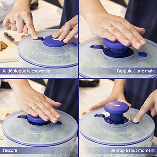 INGENIOSITE - A differenza delle centrifughe classiche, il sistema a centrifuga a pompa della centrifuga per insalata CY Global è unico accoppiato al pulsante Stop che arresta la rotazione del cestello per insalata istantaneamente. Pulire l'insalata semplicemente con una pressione sulla pompa.