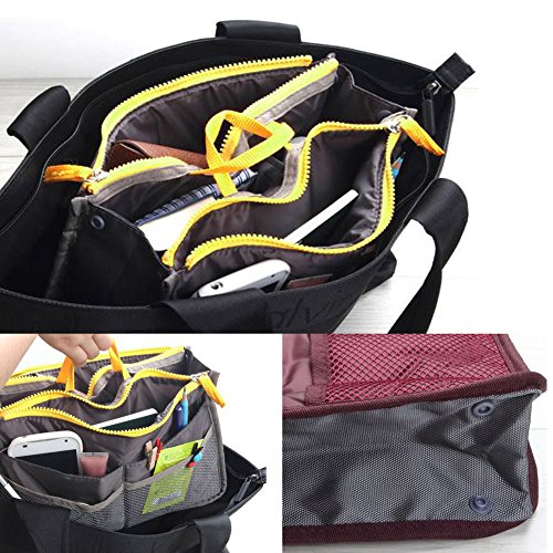 HW GLOBAL 2 pacchi Borsa Organizer - Robusto Inserto Non Pieghevole / 13 Tasche per Stile di Vita di Ogni Donna/Pouch Purse Pouch Tidy & Neat/Bag in Borsa (Rosso)