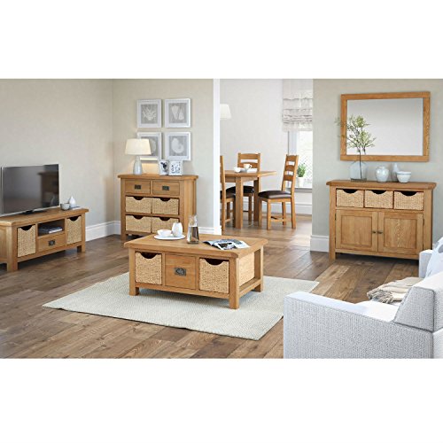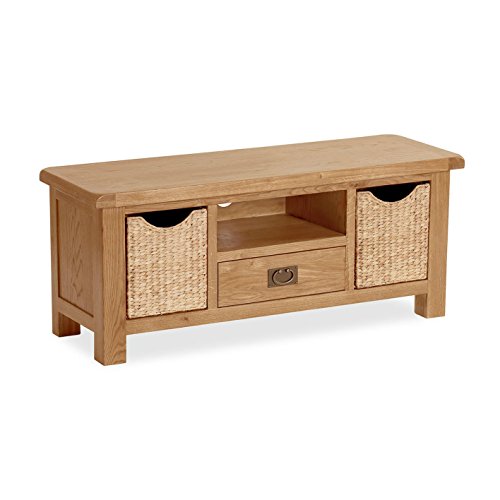 Global Home Salisbury Quercia, TV/HiFi con Ripiani in Rovere massello/Entertainment Supporto con Storage/Finitura Rustica
