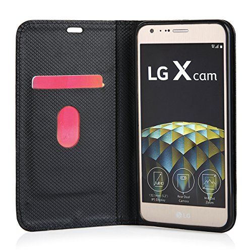 Global Technology Magnet LG Xcam Black Custodia Protettiva per LG X Cam, Chiusura Magnetica con Scomparti per Carte di Credito e Pratico aufstellfuntkion Innere Gomma Silicone Nero