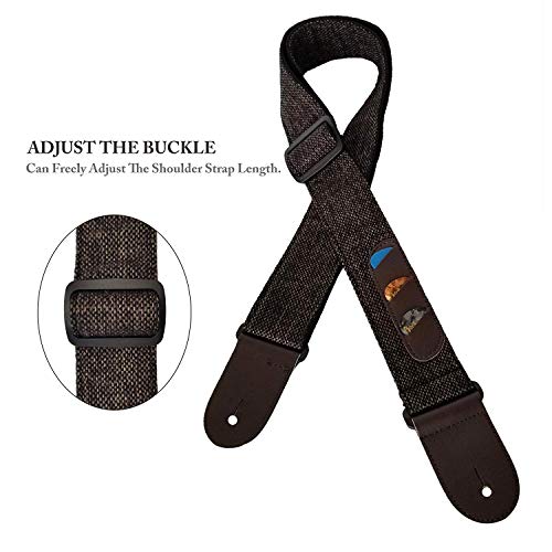 Global Park Tracolla per chitarra Cinturino basso elettrico chitarra acustica stile vintage regolabile con estremità in cuoio, plettri, fascette, bottoni