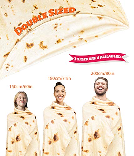 Global Tronics Coperta Burrito Tortilla 150cm Doppia Faccia, Gigante Rotonda Piadina Novità Taco Asciugamano Peluche Morbido Accogliente in Flanella Cibo Realistico Plaid Regali Creativi per Famiglia