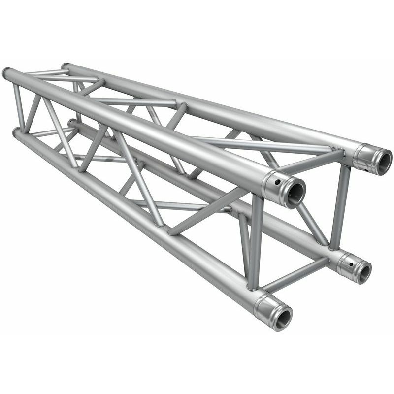 Global Truss F34150 Traliccio a 4 punti diritto da 1,5 m Passo del tubo: 29 cm (esterno) Diametro tubo principale: 50 mm Spessore della parete: 2 mm Diametro del tutore: 20 mm Materiale: AlMgSi F31 Testato TÜV Sistema F34 Peso: 10 kg Colore: Silver Con set di connettori conici (Quicklock) incluso nella consegna