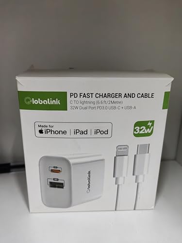 GlobaLink caricatore rapido per iPhone 32W, caricatore USB C a 2 porte con cavo da Tipo C a Lightning da 2 m [certificato MFi] compatibile con iPhone 12/12 Pro/ 12 Pro Max/ 11/ X