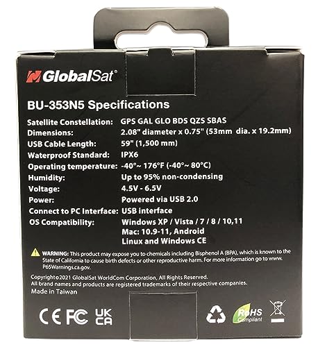 GlobalSat BU-353N5 Ricevitore GNSS USB, Nero