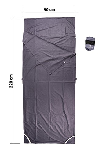 Traspirante: Il sacco a pelo da viaggio è realizzato al 100% in cotone che, a differenza del poliestere, respinge il sudore e garantisce un sufficiente ricambio d'aria all'interno del sacco a pelo.