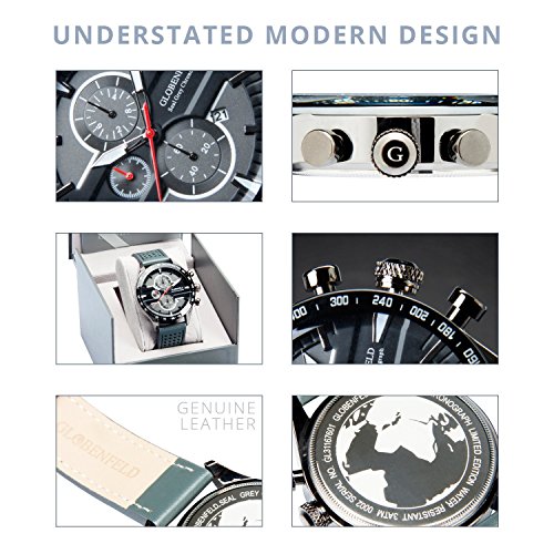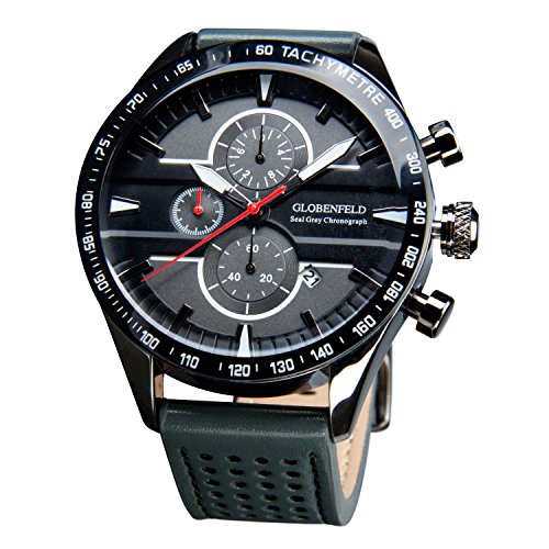 Globenfeld Seal Grey Cronografo Uomo Orologio Sportivo - Grigio - Display Analogico Tripla Funzione con Cronometro e Tachimetro - Cinturino in Pelle e Vetro Antigraffio