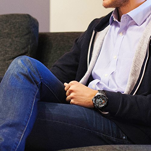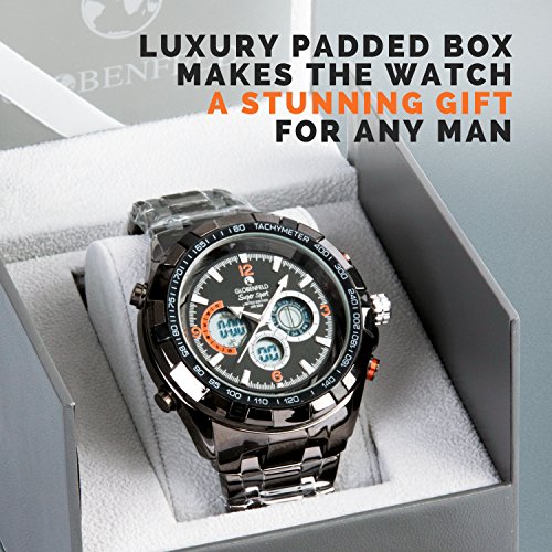 Globenfeld Super Sport orologio da uomo, di colore nero scuro, quadrante di 51 mm, 3 funzioni e display analogico/digitale con cronometro e tachimetro