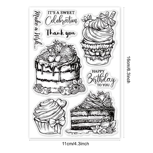 GLOBLELAND Buon Compleanno Torta Timbri Trasparenti per Fai Da Te Scrapbooking Torta di Compleanno Sigilli Timbri Trasparenti In Silicone Timbri Trasparenti per Biglietti Creazione Album Fotografico