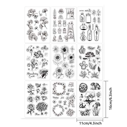 GLOBLELAND 9 Fogli Piante Naturali Modello Timbro Trasparente Timbro In Silicone Timbro Trasparente Gomma per Fare Carta Decorazione Scrapbooking FAI DA TE