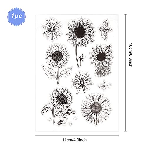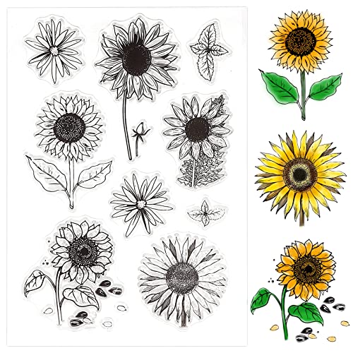 GLOBLELAND Girasoli Timbro Trasparente Carte Timbro In Silicone Foglie Timbro Sigilli Trasparenti per Decorazione di Carte e Scrapbooking Fai Da Te