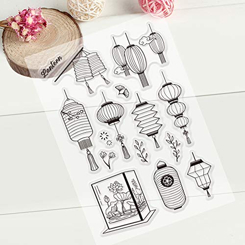 GLOBLELAND Modello di lanterna Timbro trasparente Timbro in silicone Timbri trasparenti Gomma per la fabbricazione di carte Decorazione Scrapbooking fai da te