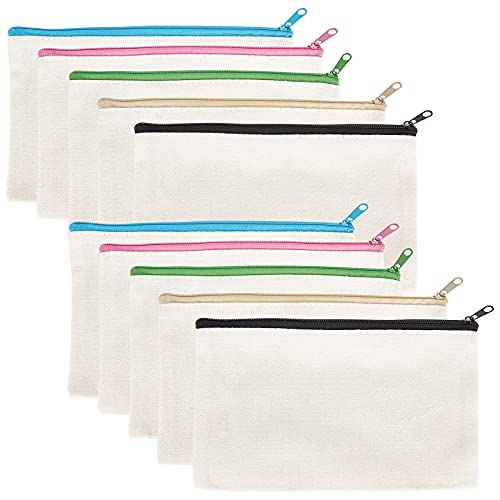 GLOBLELAND 15 Pezzi Astuccio in Tela Bianco Borsa Cosmetica fai da in Tela con Cerniera Astuccio per Matite Fai Da Te, Borsa da Viaggio Multifunzionale, Portamonete per Scuola, Trucco e Bricolage
