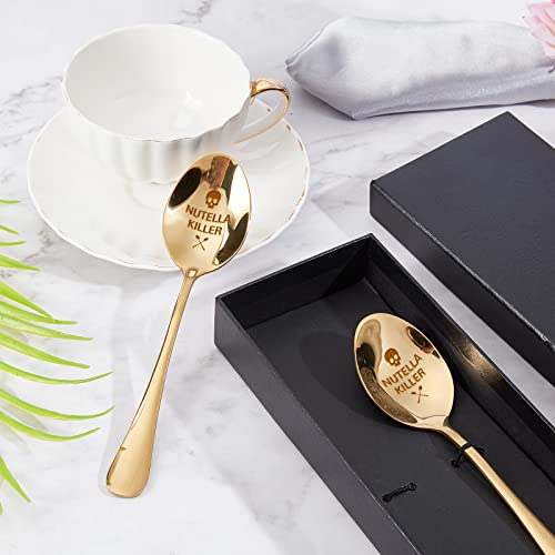 GLOBLELAND 2 Pezzi Cucchiai d'oro in Acciaio Inossidabile Inciso al Laser Liscio con Scritta Chiara Nutella Killer Include Scatola per Regalo di Compleanno Anniversario